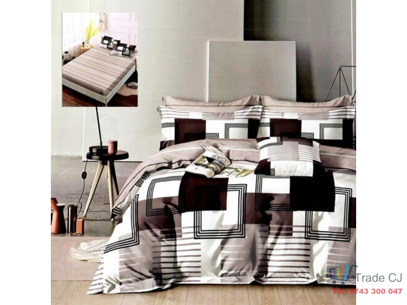 Set de lenjerie pentru pat dublu din finet moale si placut la atingere, ideal pentru sezonul rece. Include 6 piese cu design modern, model cu figuri geometrice, perfect pentru un dormitor cu stil contemporan.