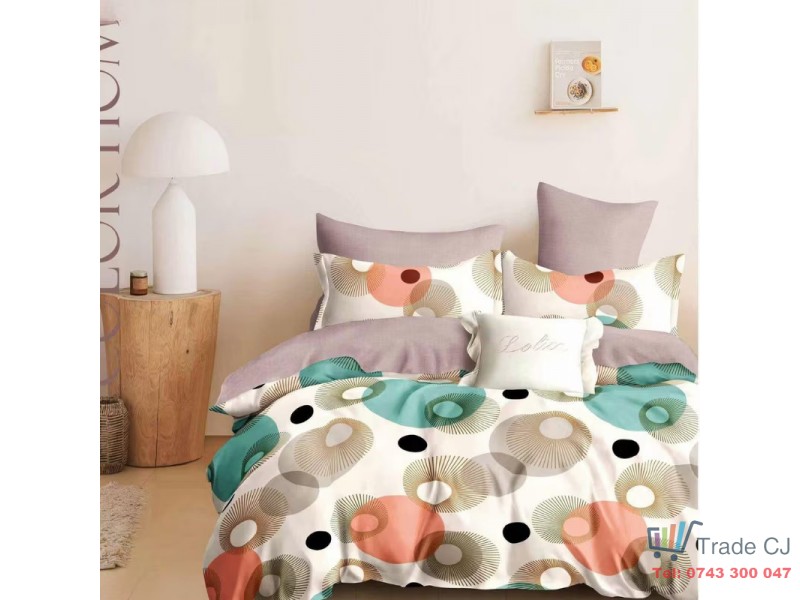 Set de lenjerie pentru pat dublu din finet gros si placut la atingere, ideal pentru sezonul rece. Include 6 piese cu design modern, model lino cerc – un imprimeu abstract cu cercuri, potrivit pentru dormitoare contemporane.